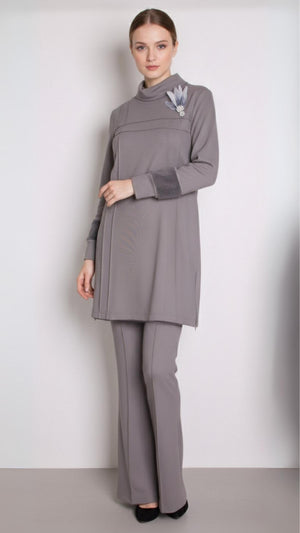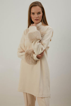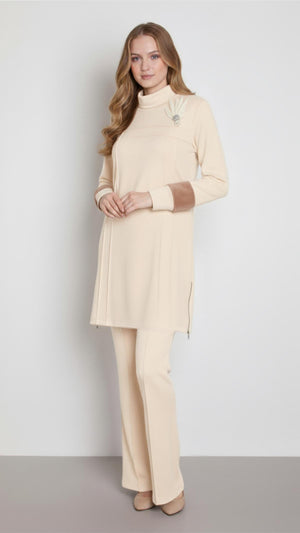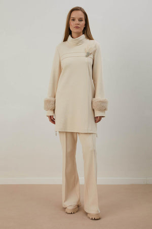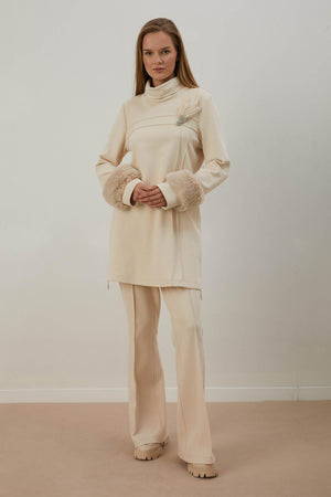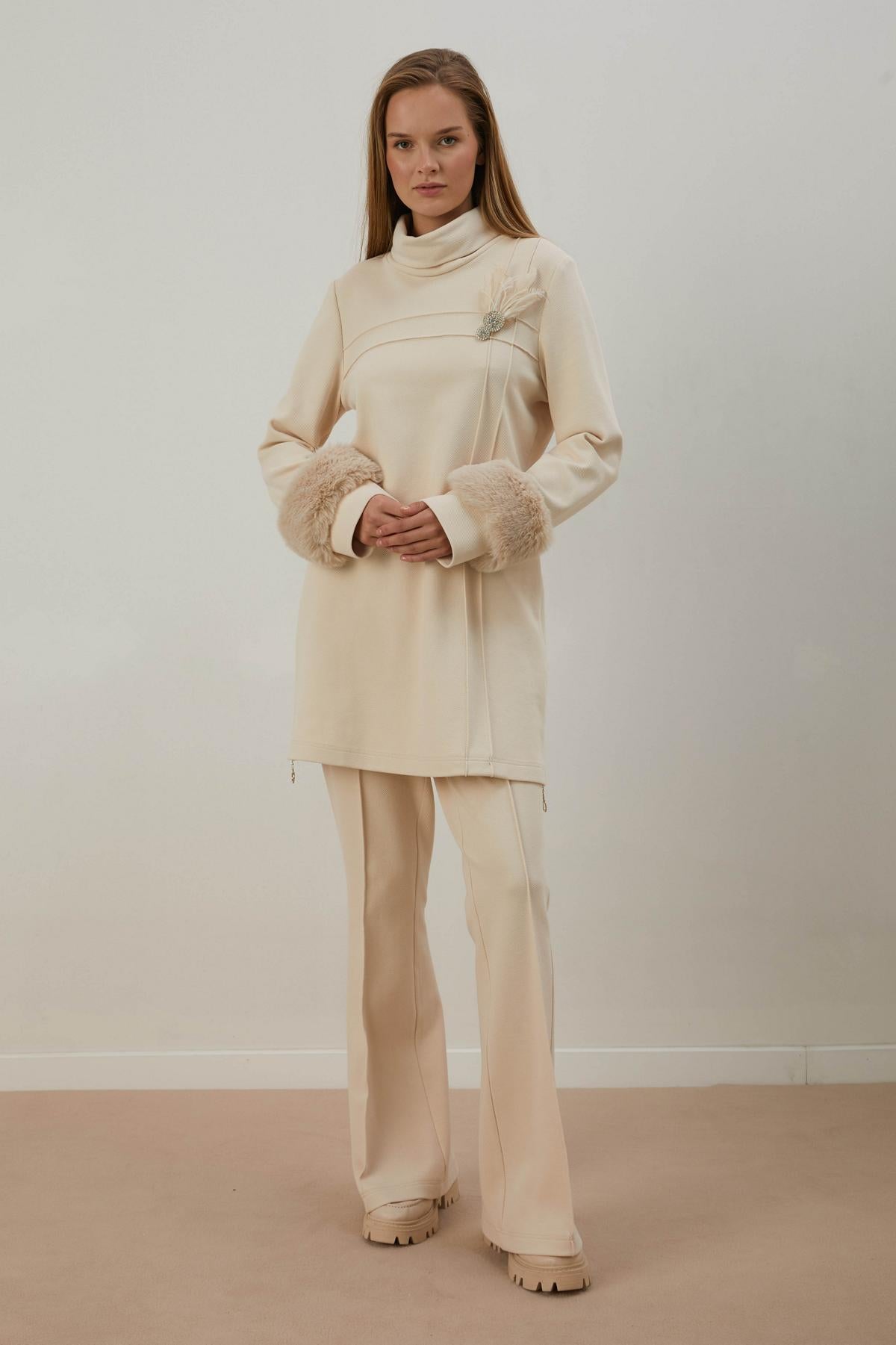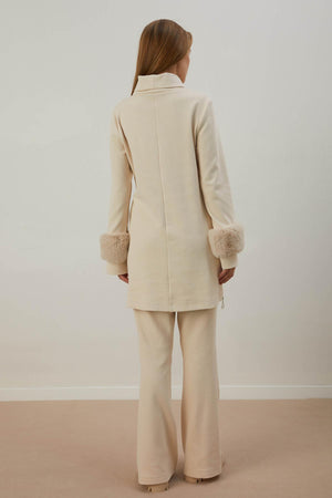 Ana Sayfa A405455 Aguaje Kolu Kürklü Nervürlü Pantolonlu Takım